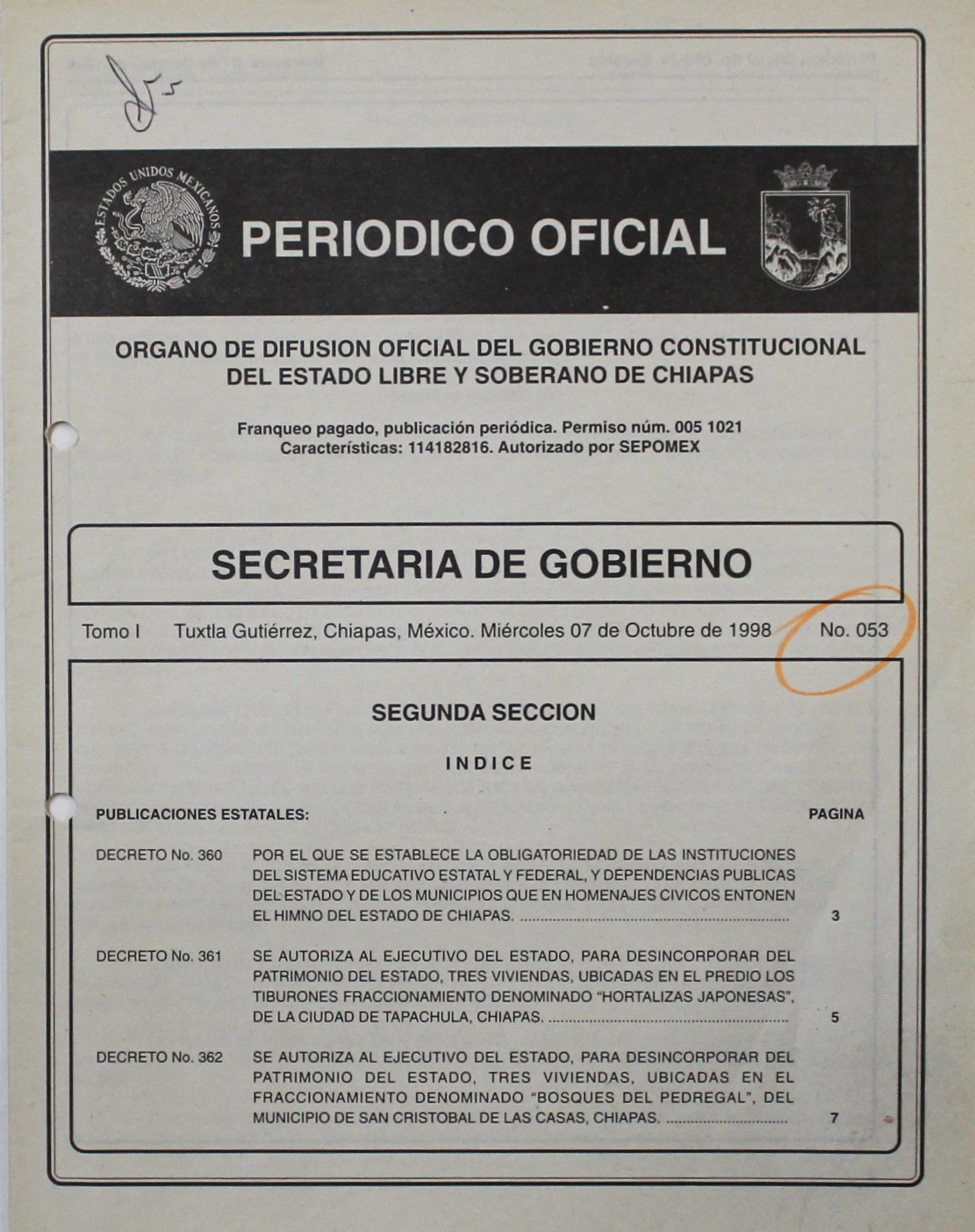 Periódico Oficial del Estado #53 de 7 de octubre de 1998.