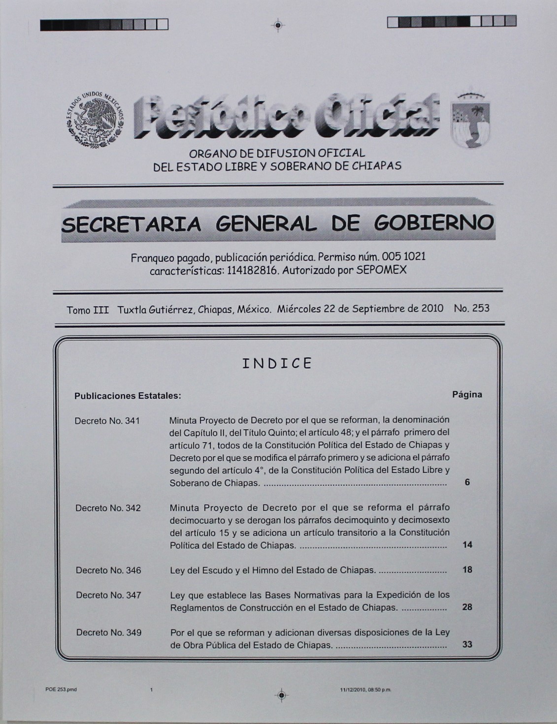 Periódico Oficial del Estado #253, de 27 de septiembre de 2010.